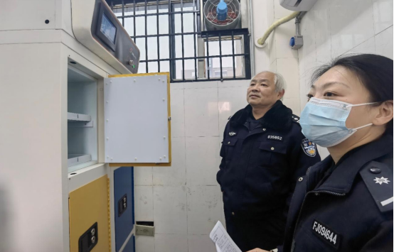 马房山派出所两位警官依据验收标准对防爆库的防盗门、防盗网、防爆灯、防爆开关、防爆插座、通风系统、门禁系统、监控系统等硬件设施进行审查;同时对危化品管理及应急预案等制度、双人双岗管理落实、危化品存取系统使用、防盗防抢等易制爆危险化学品管理体系逐一进行实操检验测试。两位警官评估后,一致认为防爆间已达到国家相关规定建设标准,在增加环境温湿度测量仪、提升天窗防盗栏和安全锁防护等级后,即可开展正式验收。