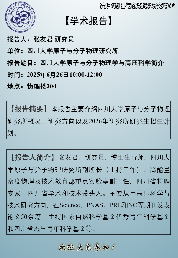 【PA捕鱼官方网站】四川大学原子与分子物理学与高压科学简介