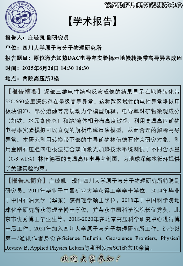 【PA捕鱼官方网站】原位激光加热DAC电导率实验揭示地幔转换带高导异常成因